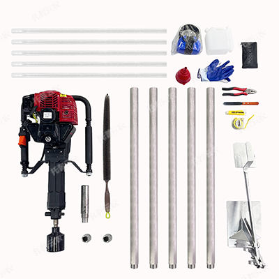 汽油動力發動機一臺,發動機工具包一套,標準土壤鉆頭1個、硬質土鉆頭1個任選,1米的鉆桿5根(根據需要另加)、不小于1米的塑料樣品管2根,刮刀、膠錘、老虎鉗、耳機、5M卷尺、手套、清潔刷各1個,專用提取設備1套、工業塑料運輸箱1個